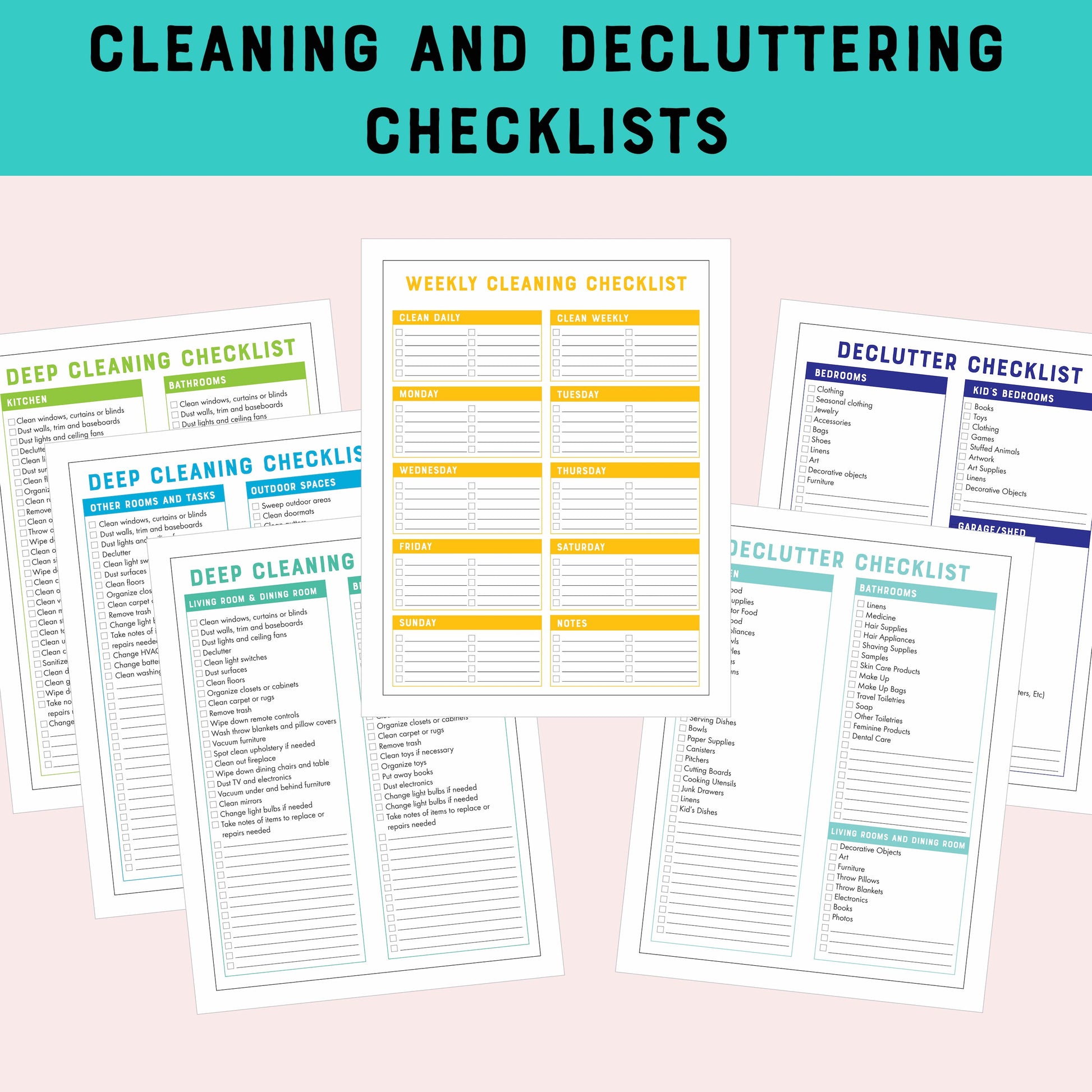 - Deep cleaning checklist ideas - 3 pages