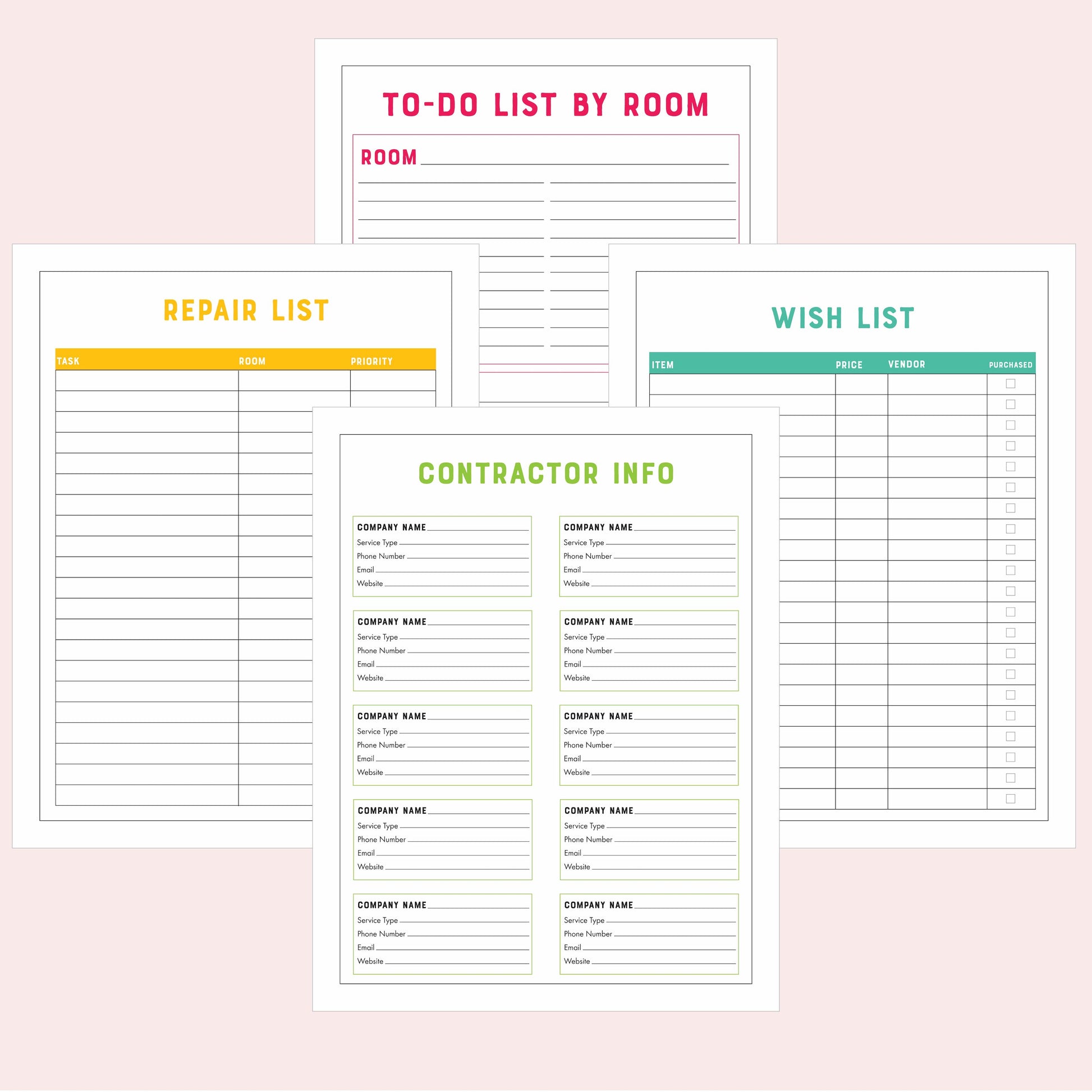 Colorful Home Improvement Planner Printable PDF (20 Pages)