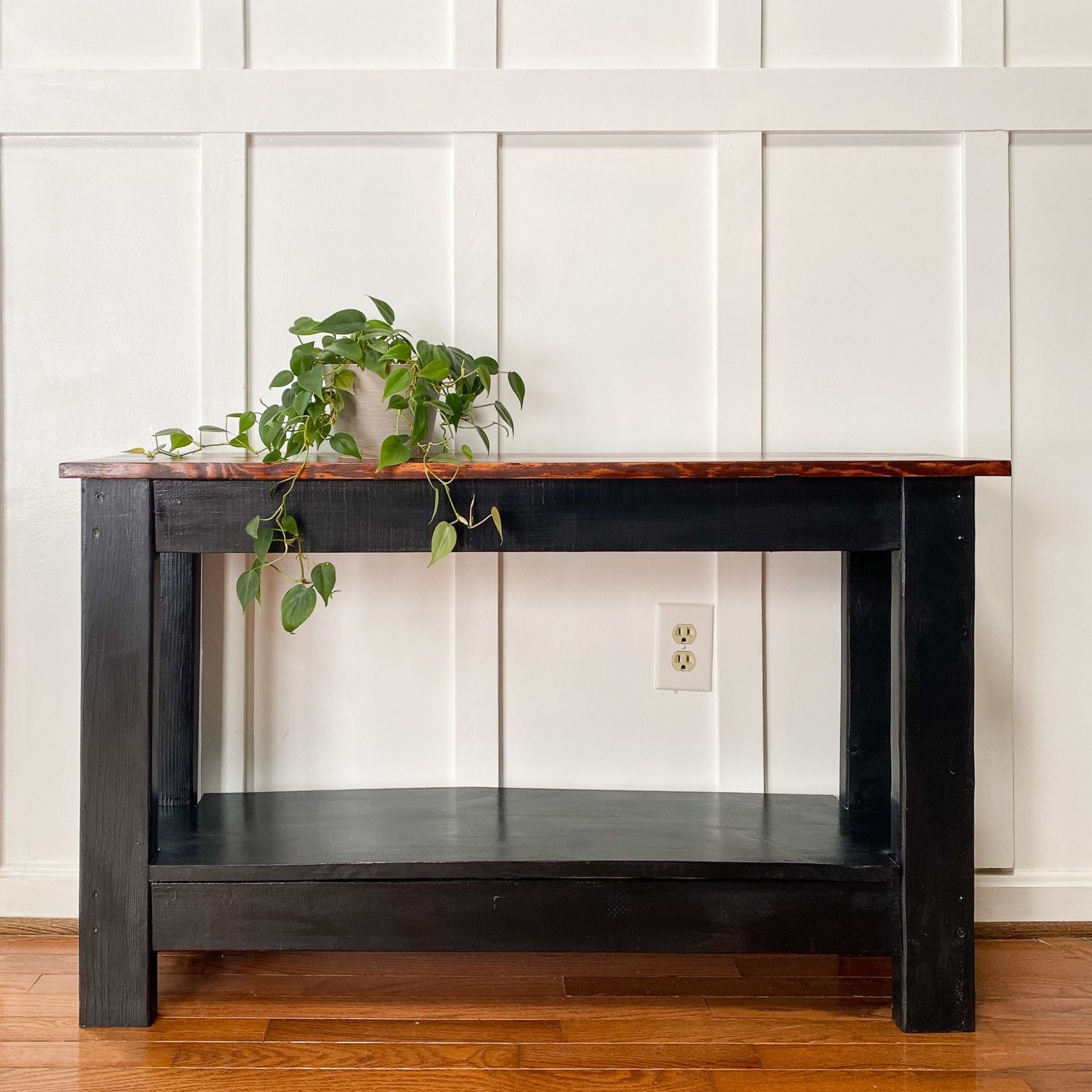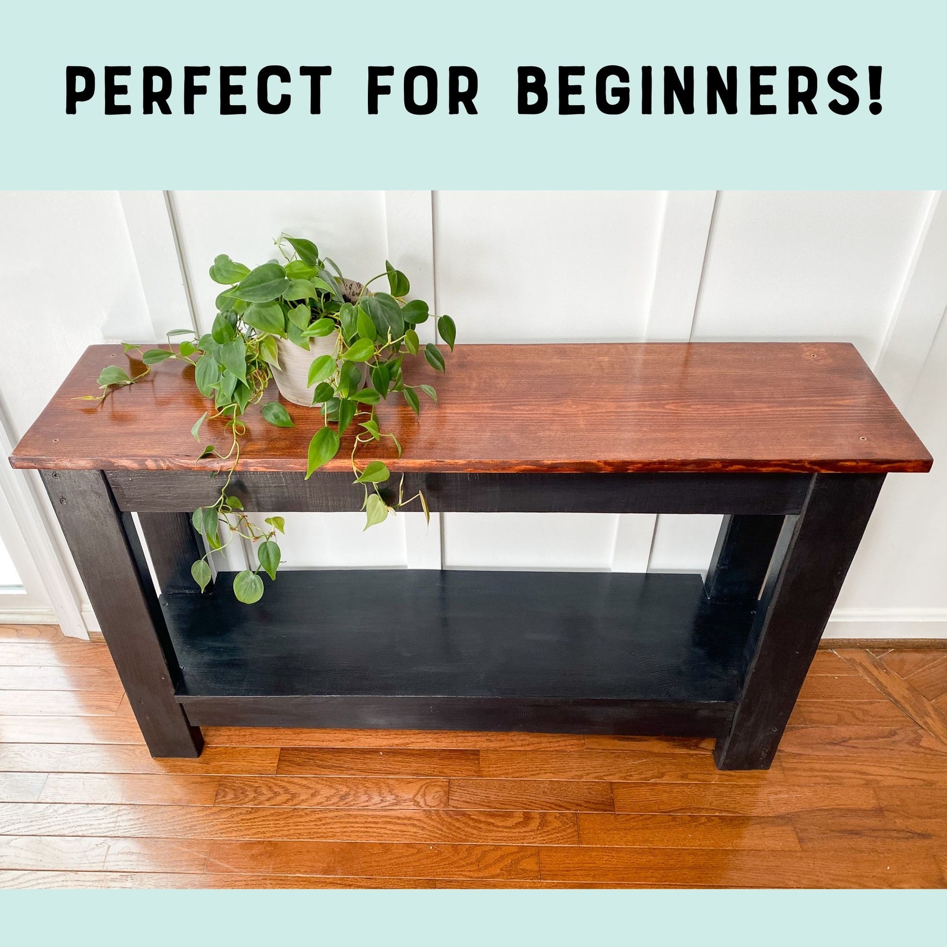 Build a simple sofa table with these easy to follow woodworking plans. This versatile table could alternatively be used as a console table, entryway table, or even as a TV console.